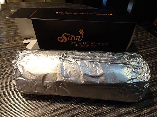拿出來後,是貼心的用錫箔紙包裝,和一般市售赤裸裸、容易撞壞的包裝不一樣,就算拿著它晃來晃去,也不用擔心瑞士捲外觀走樣XD