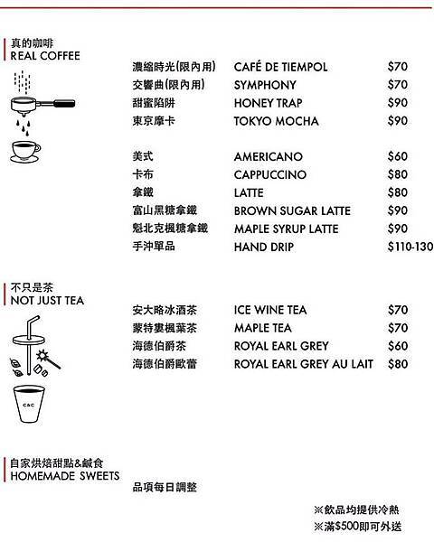 (飲料價目表 擷取自coffee and couple官方臉書)