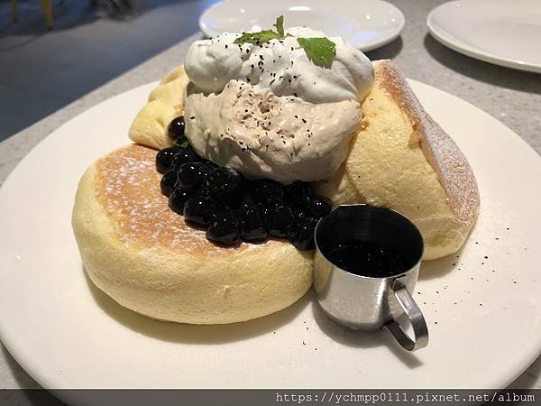內含黑糖珍珠、紅茶鮮奶油、一般口味鮮奶油、鬆軟的舒芙蕾。