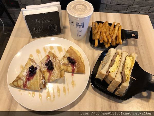 內含綜合酸甜莓果、蜂蜜淋醬、鮮奶油及法式薄餅