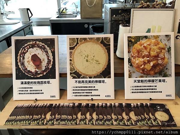 目前有「不能再完美的檸檬塔$435」、「天堂般的檸檬芒果塔$580」、「滿滿愛的玫瑰荔枝塔$580」