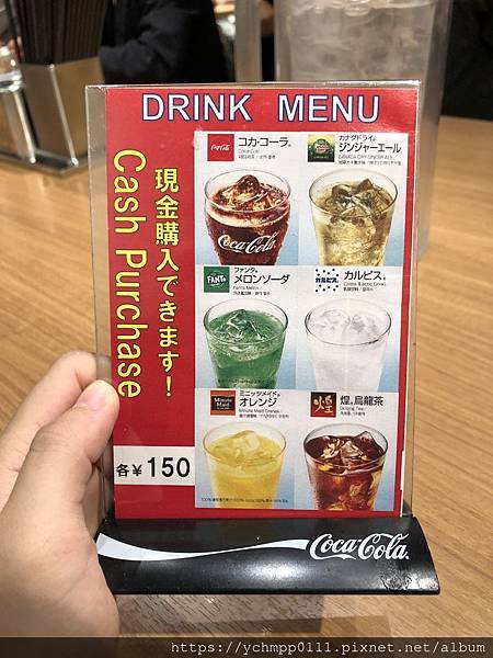 可以從可樂、檸檬紅茶、哈密瓜汽水、可爾碧斯、柳橙汁、烏龍茶中選擇