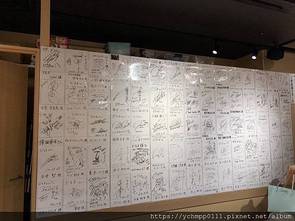 胖坐的長桌後面就是一面滿滿簽名的牆