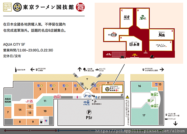 附上清楚的地圖請參考。(翻攝AQUA CITY ODAIBA官網)